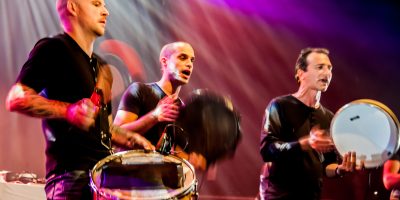 LO CÒR DE LA PLANA : Et sur la Plaine battait un choeur Depuis 2001, dans le fameux quartier de la Plaine à Marseille, Lo Còr de la Plana réinvente la vocalité méridionale, en la mêlant aux sonorités archaïques d’une Méditerranée à la fois déchaînée, âpre et fusionnante. La percussion et la voix composent le couple emblématique de ce rituel rudimentaire, minimal, accompagné par ce que le corps peut encore faire battre d’essentiel : les mains, les pieds ou les peaux. Contrairement à d’autres traditions, la polyphonie – qui plus est masculine – n’existait pas dans le patrimoine chanté occitan jusqu’à ce que Manu Théron décide de l’inventer. Il a réuni pour ce projet quatre autres chanteurs percussionnistes à l’énergie communicative : Benjamin Novarino-­‐Giana, Sébastien Spessa, Denis Sampieri et Rodin Kaufmann.